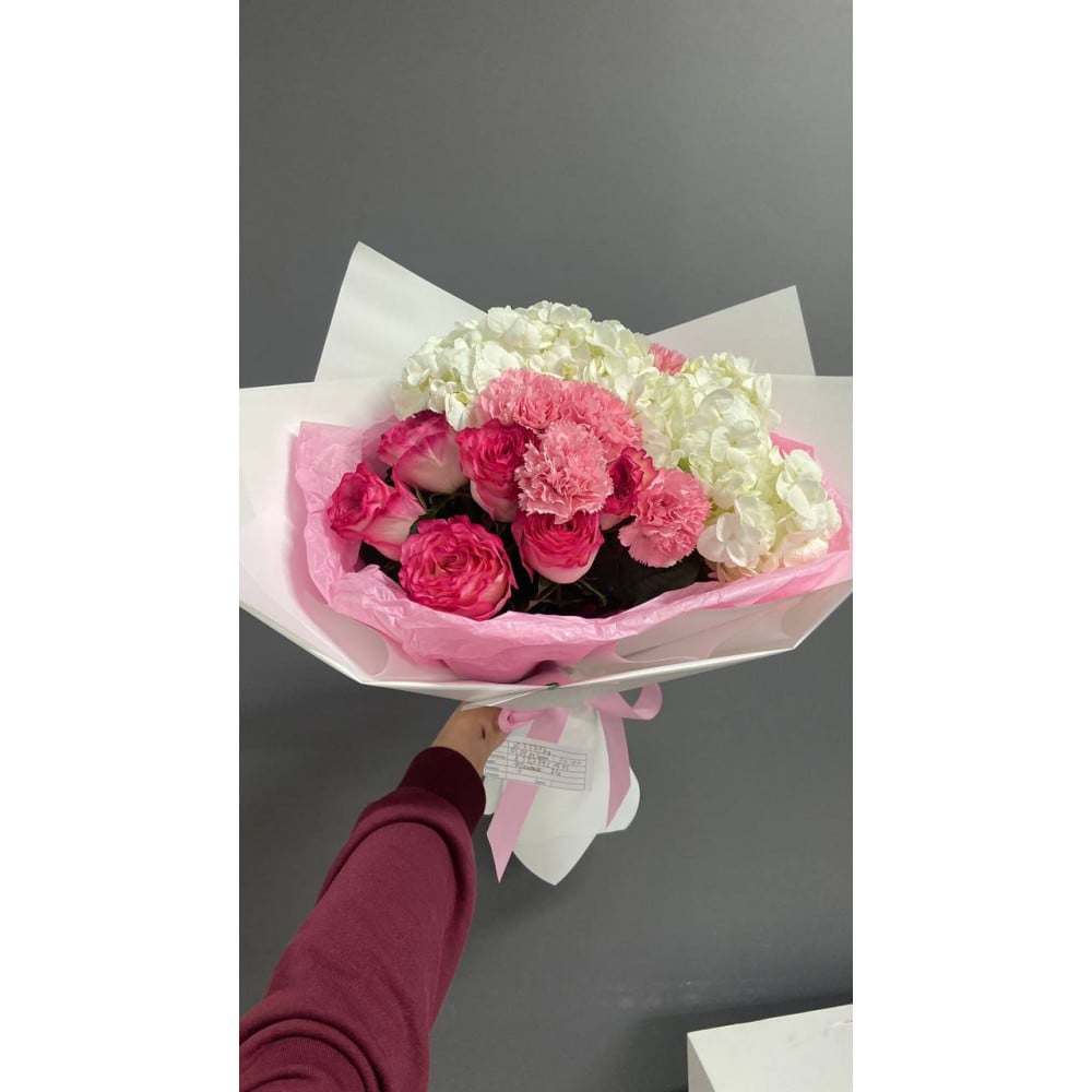 Букет «Богема» с пионовидными розами и гортензией — это роскошное и изысканное оформление, которое сочетает в себе классическую элегантность и современные тенденции. Такой букет часто выбирают для особых случаев, таких как свадьбы, юбилеи или как шикарное подарочное оформление. Вот как можно оформить такой букет: Состав букета Богема: пионовидные розы, гортензия