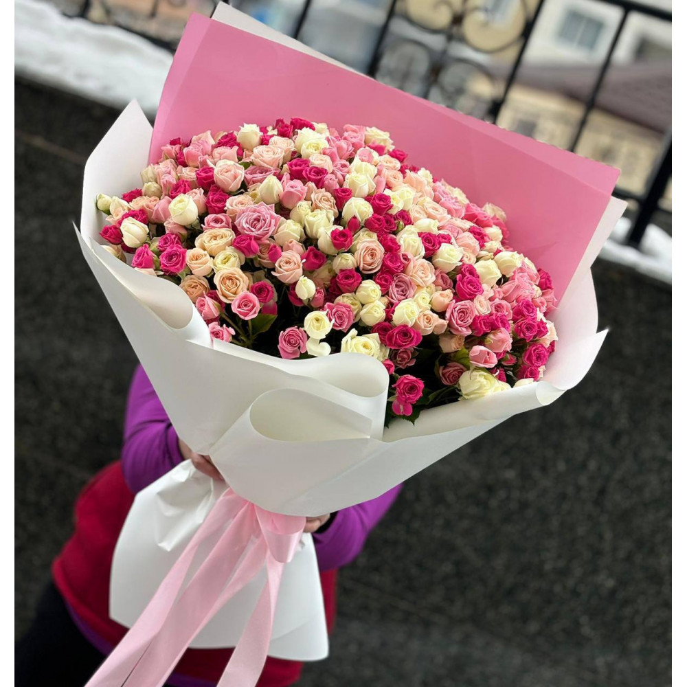 - Мягкие оттенки: Разнообразие оттенков спрей роз, от нежно-розовых до ярких, делает букет идеальным для выражения самых искренних и теплых чувств.